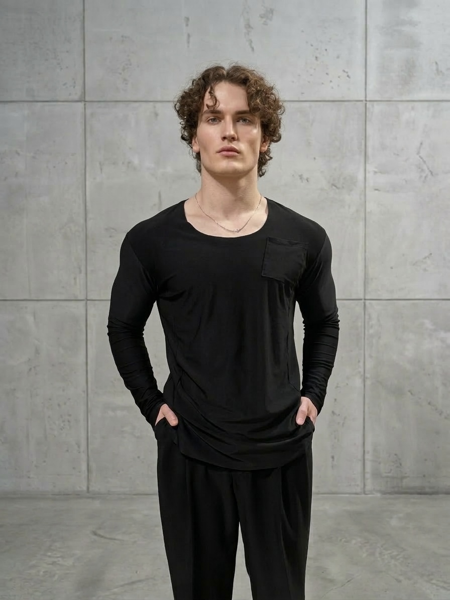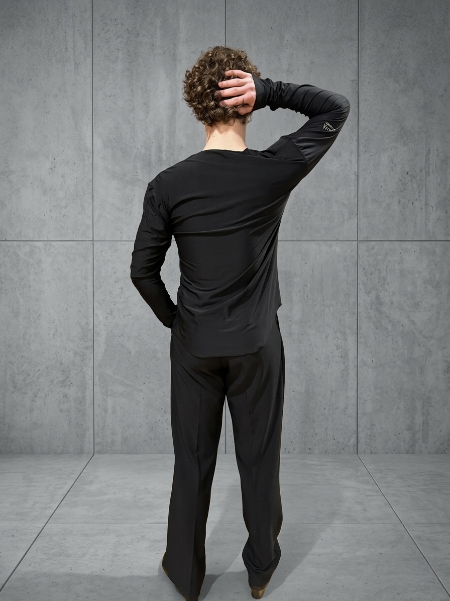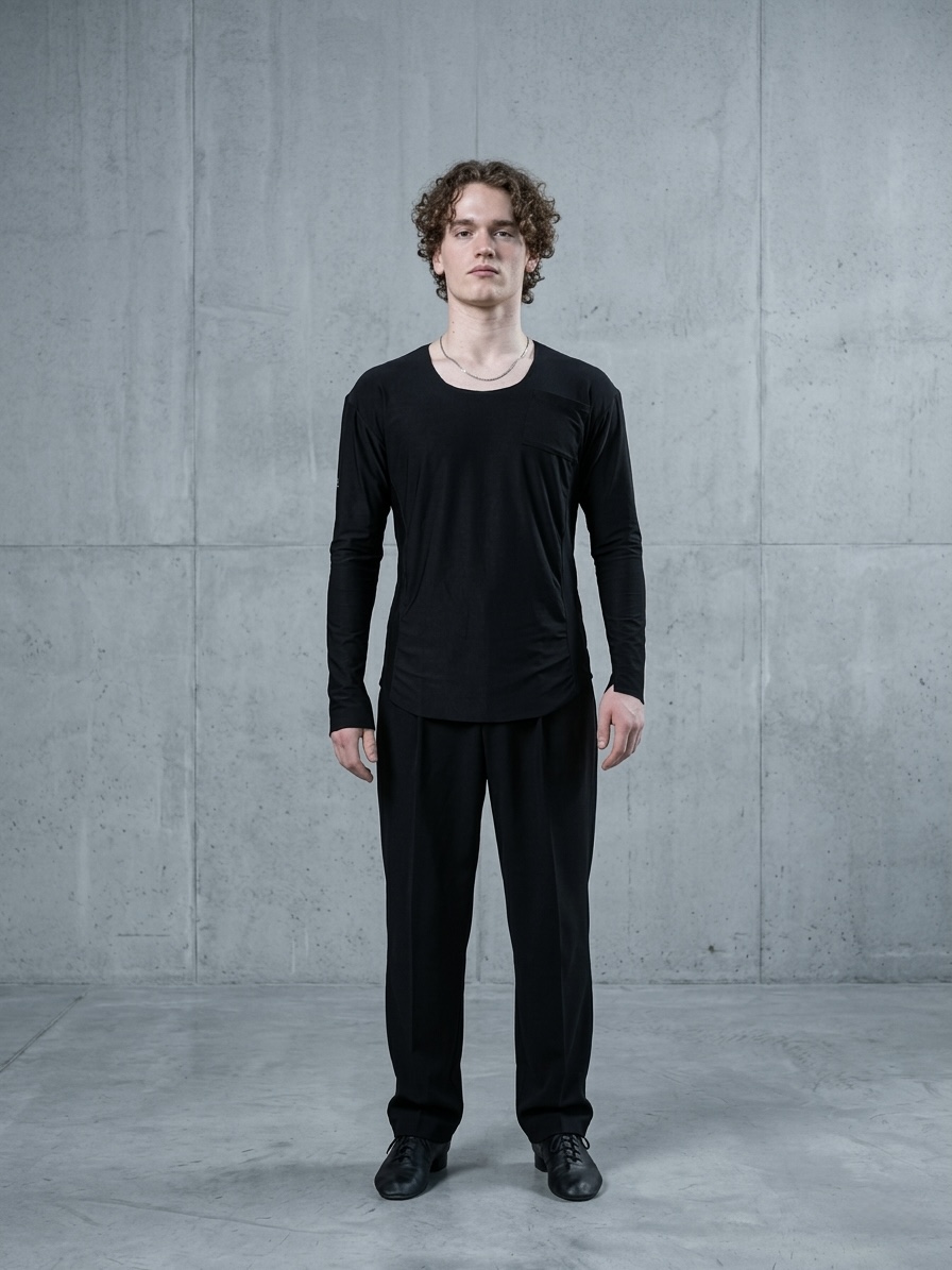 Niezależnie od tego, czy szlifujesz zmysłową rumbę, czy trenujesz dynamicznego jive'a, oddychający i rozciągliwy materiał zapewnia maksymalny komfort. Odpowiednio wycięty dekolt i taliowany fason perfekcyjnie podkreślają męską sylwetkę, uwydatniając pracę centrum (core) na parkiecie. Dodatkowo, nowoczesnego, studyjnego charakteru nadaje jej elegancka, asymetryczna kieszonka.