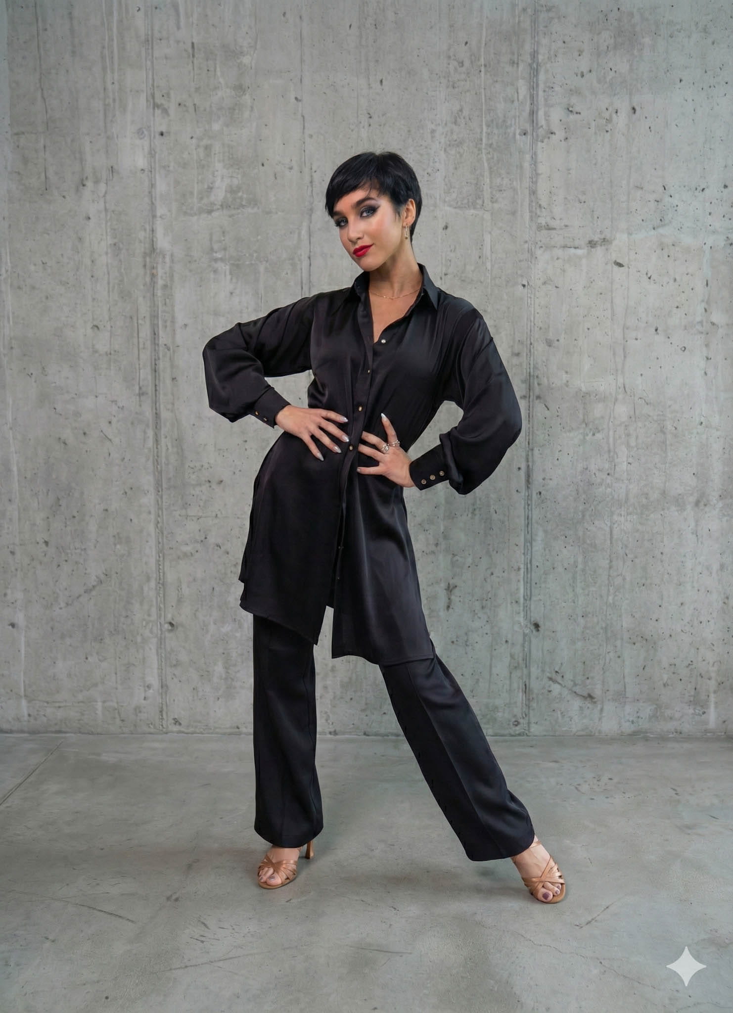 Poznaj Satin Long Lady Latin Shirt – przełomową propozycję w naszym sklepie, czyli pierwszą damską koszulę inspirowaną żywiołowym latynoskimi tańcami! Ten wyjątkowy model wykonany z luksusowej satyny, z długimi, stylowymi rękawami i modnym krojem, łączy elegancję z funkcjonalnością. Idealna zarówno na parkiet taneczny, jak i na codzienne okazje – podkreśli Twoją osobowość i pasję do ruchu! Stworzona dla miłośniczek tańca i mody, którzy szukają czegoś wyjątkowego. Zamów teraz i poczuj latynoski klimat!